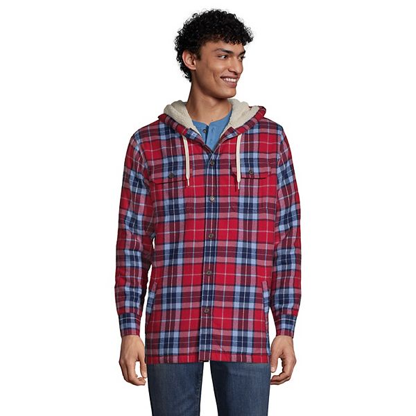 Big Tall Lands End Plaid Flannel Sherpa Lined Hooded Shirt Jacket
